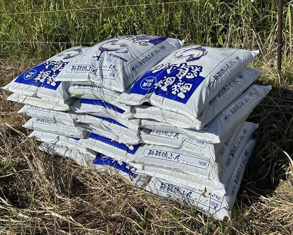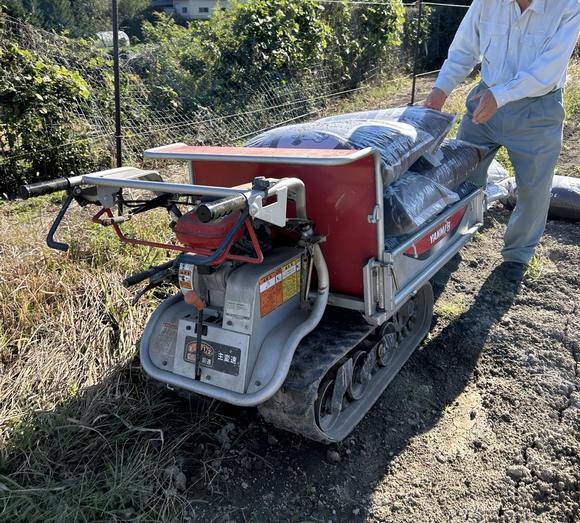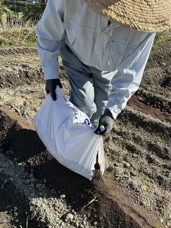 牛糞、鶏糞をまく作業、15kg程度の袋を中腰で抱えながらとなるのでかなりきつい作業になります。
