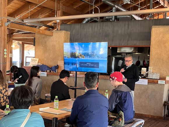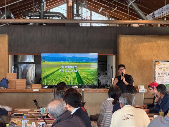 代表の尾﨑氏に、農業が抱える課題解決についてお話いただきました。「無農薬」や「固定種、在来種」といった付加価値をつけて商品の価値を上げる取り組みや、仰木に合った農業のやり方を見極めて取り組むことが大切、というお話を伺うことができました。